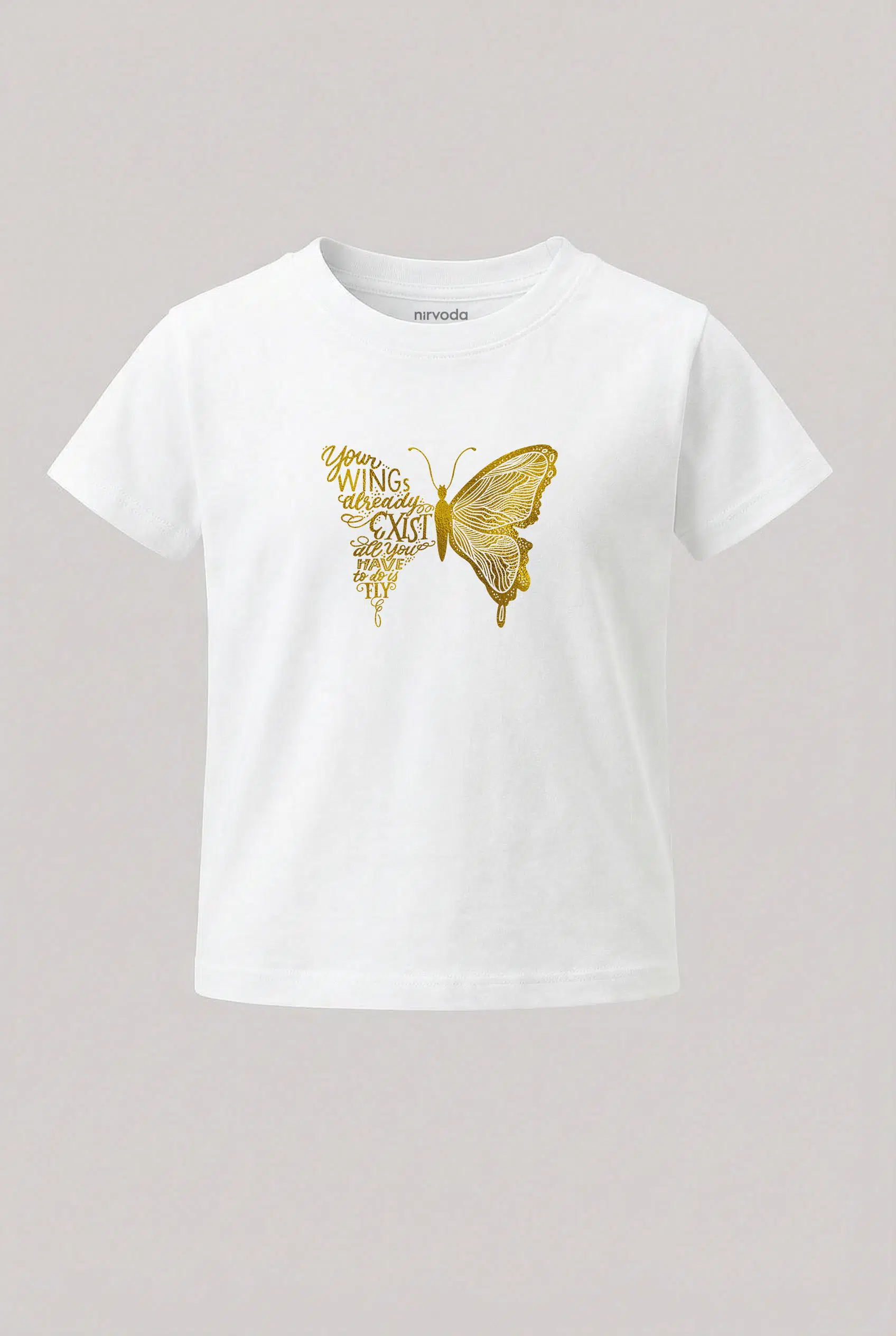 Altın Kelebek Baskılı Çocuk Tişört, %100 pamuk 24/1 süprem penye kumaştan üretilmiştir ve Nirvoda kelebek çocuk tişört koleksiyonu arasında yer almaktadır. Nefes alabilir yapısı sayesinde terletmeyi minimuma indiren yumuşacık dokuya sahiptir. Yüksek dayanıklılığa sahip transfer baskı teknolojisi uygulanan baskılı tişörtlerimiz her yıkamada canlılığını korur. Hem kendiniz için şık bir seçim, hem de çocuklarınıza özel ve anlamlı bir hediye alternatifi olarak tercih edebilirsiniz.