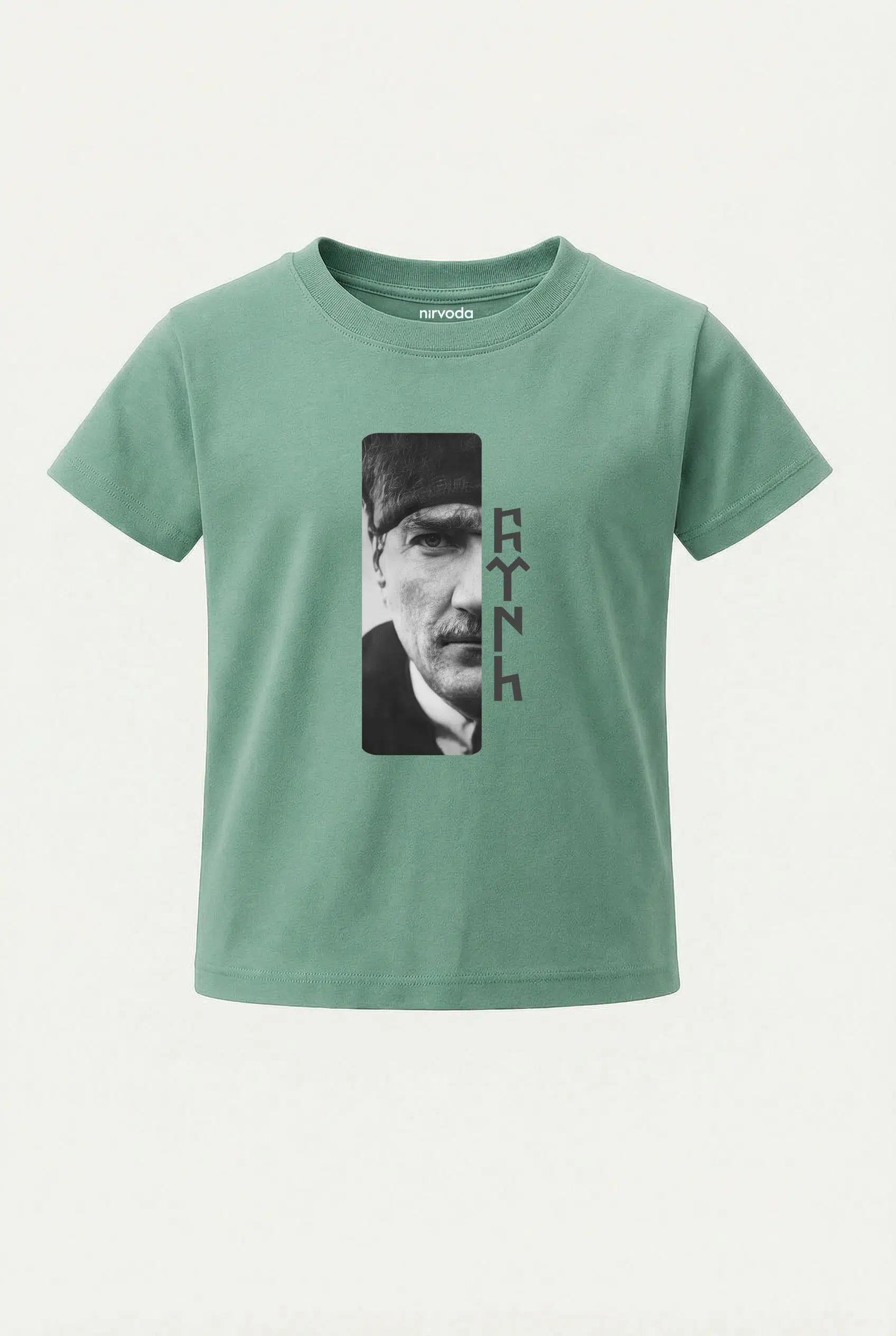 Atatürk Göktürkçe Türk Baskılı Çocuk Tişört, %100 pamuk 24/1 süprem penye kumaştan üretilmiştir ve Nirvoda Ataürk çocuk tişört koleksiyonu arasında yer almaktadır. Nefes alabilir yapısı sayesinde terletmeyi minimuma indiren yumuşacık dokuya sahiptir. Yüksek dayanıklılığa sahip transfer baskı teknolojisi uygulanan baskılı tişörtlerimiz her yıkamada canlılığını korur. Hem kendiniz için şık bir seçim, hem de çocuklarınıza özel ve anlamlı bir hediye alternatifi olarak tercih edebilirsiniz.