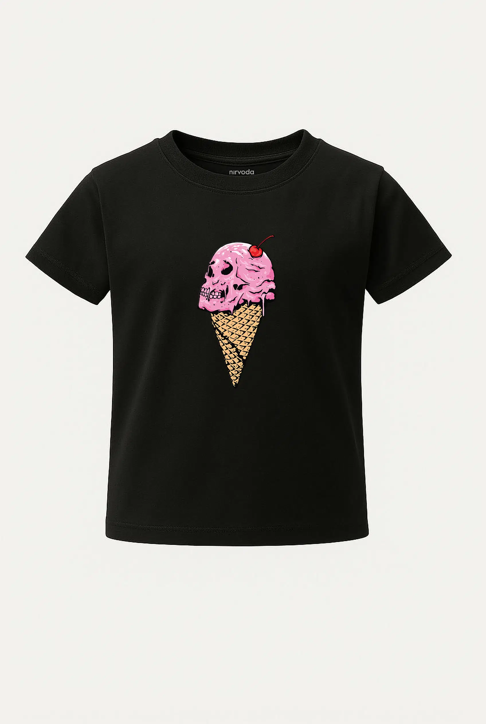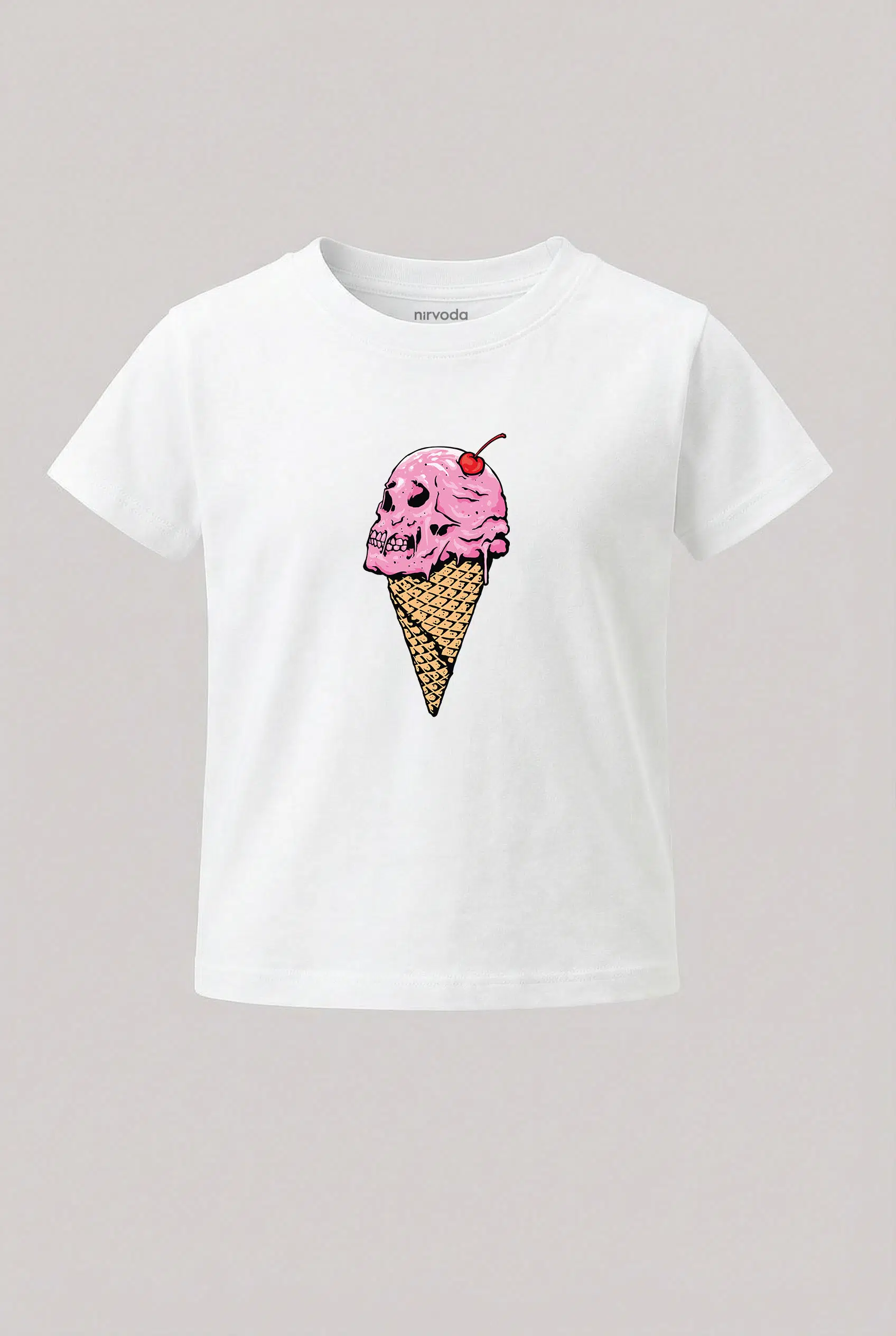 Dondurma Kurukafa Baskılı Çocuk Tişört, %100 pamuk 24/1 süprem penye kumaştan üretilmiştir ve Nirvoda kurukafa çocuk tişört koleksiyonu arasında yer almaktadır. Nefes alabilir yapısı sayesinde terletmeyi minimuma indiren yumuşacık dokuya sahiptir. Yüksek dayanıklılığa sahip transfer baskı teknolojisi uygulanan baskılı tişörtlerimiz her yıkamada canlılığını korur. Hem kendiniz için şık bir seçim, hem de çocuklarınıza özel ve anlamlı bir hediye alternatifi olarak tercih edebilirsiniz.
