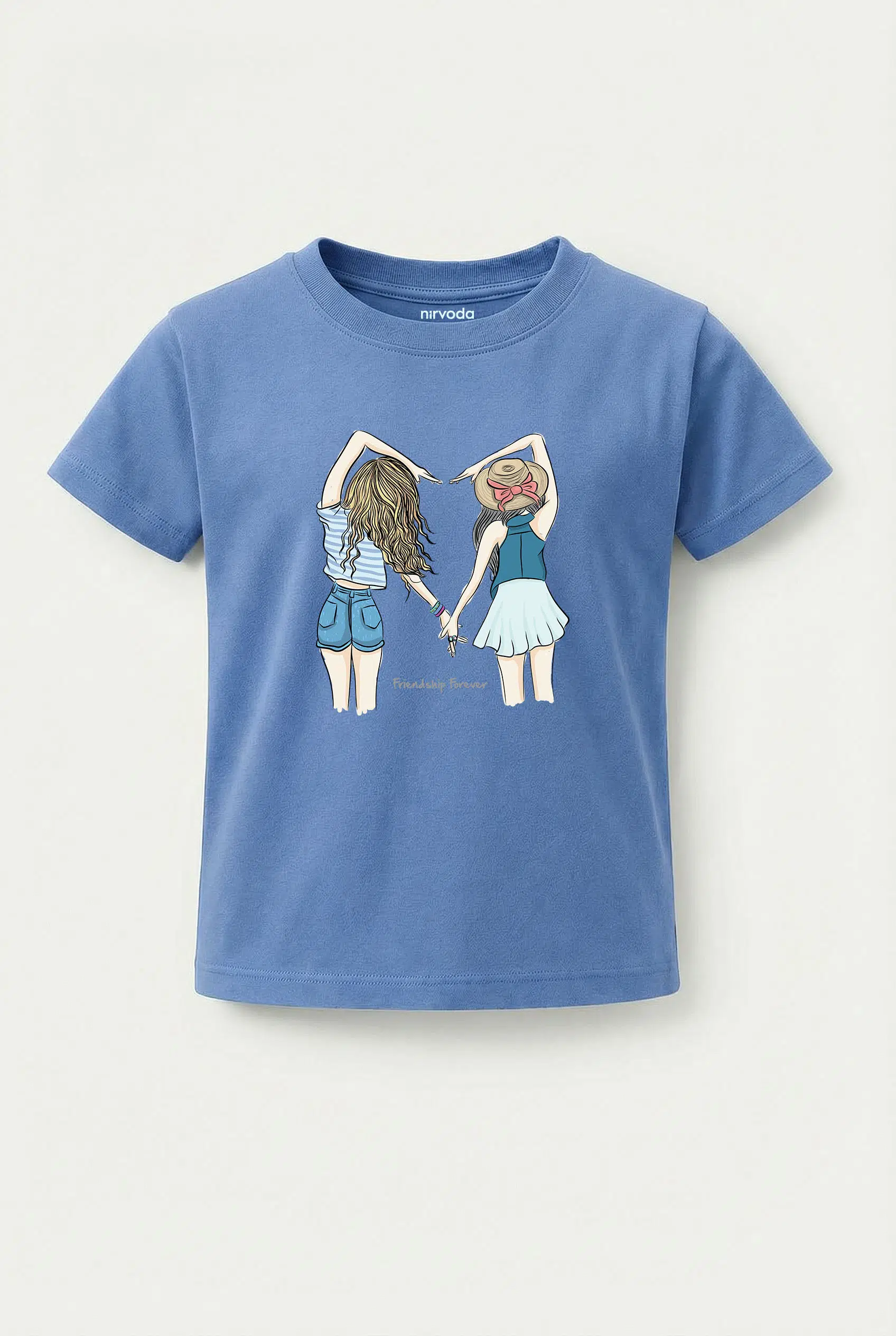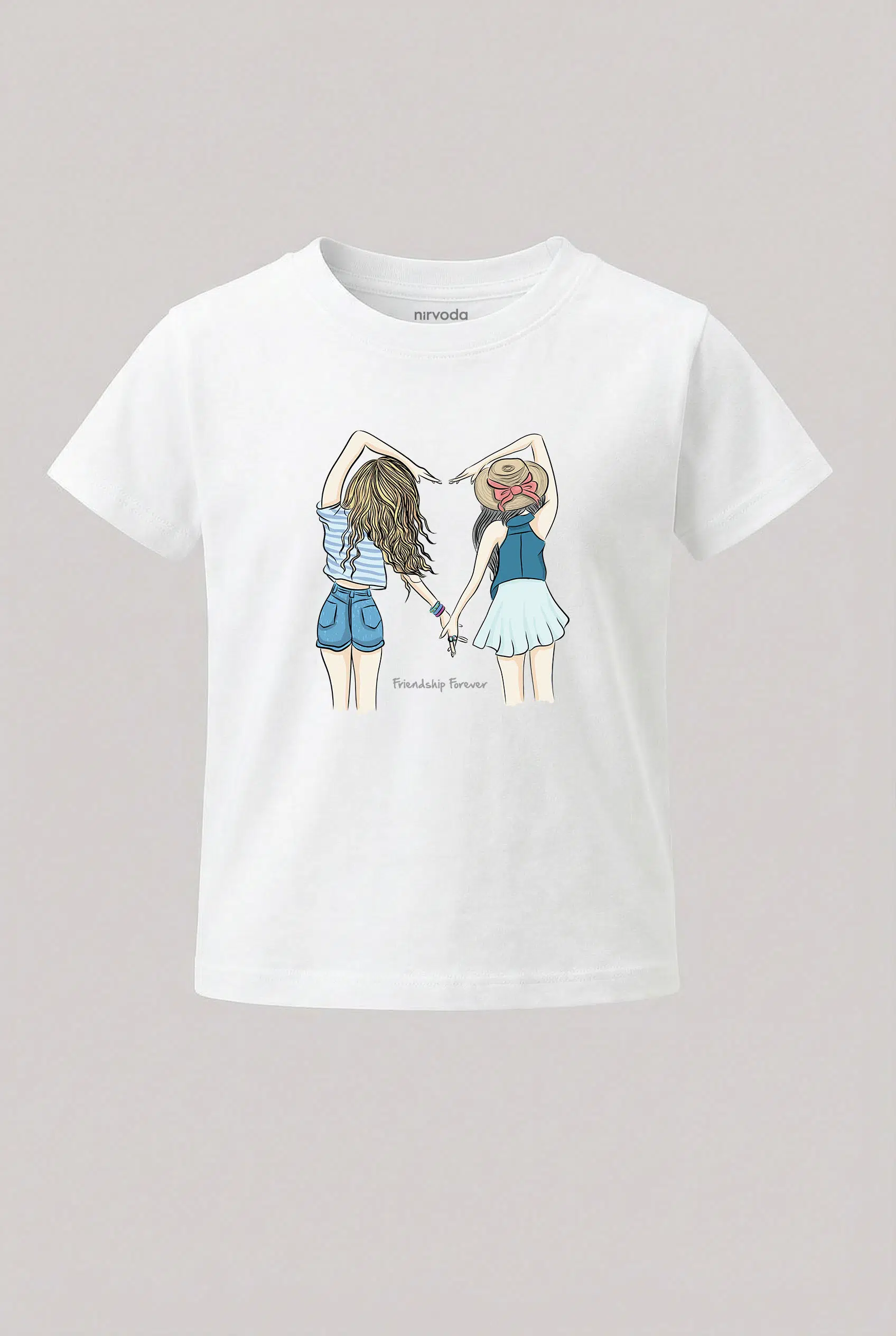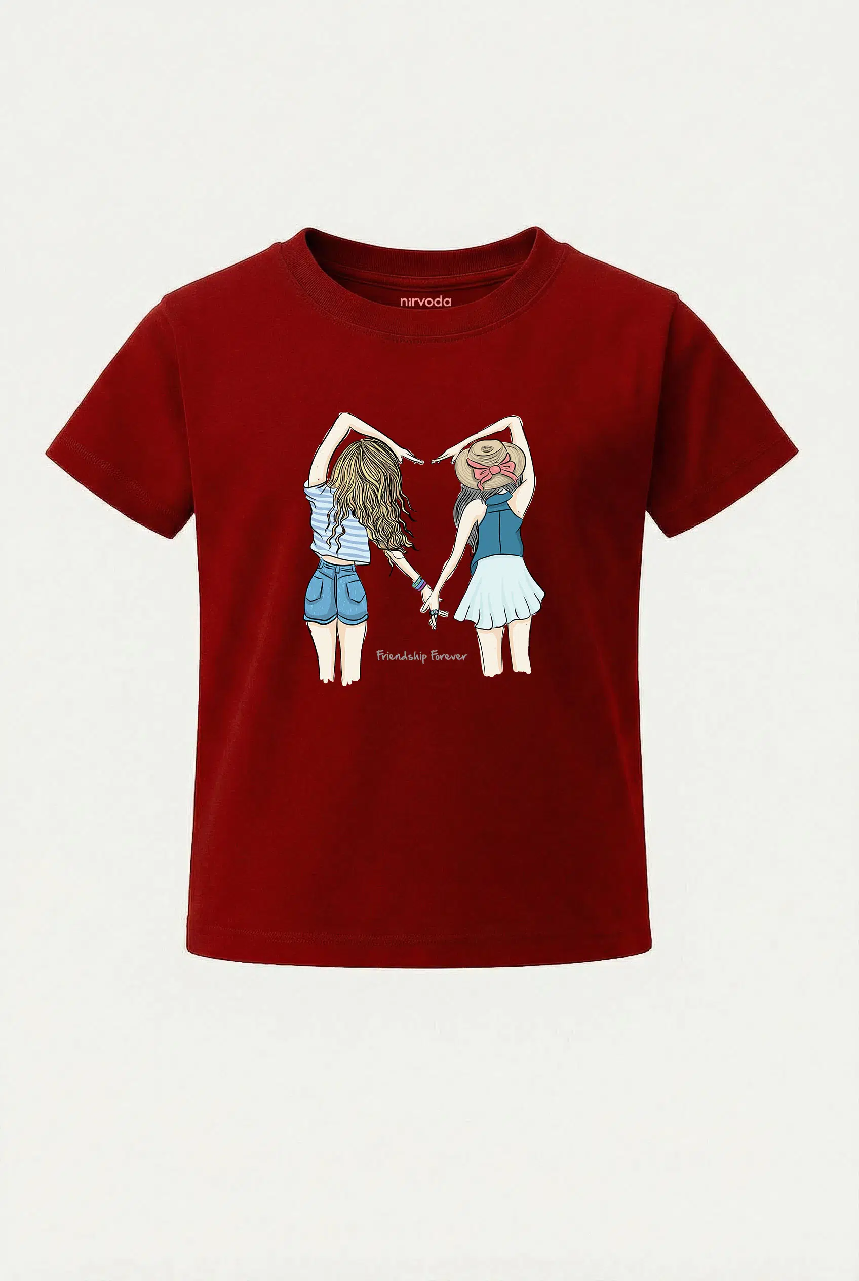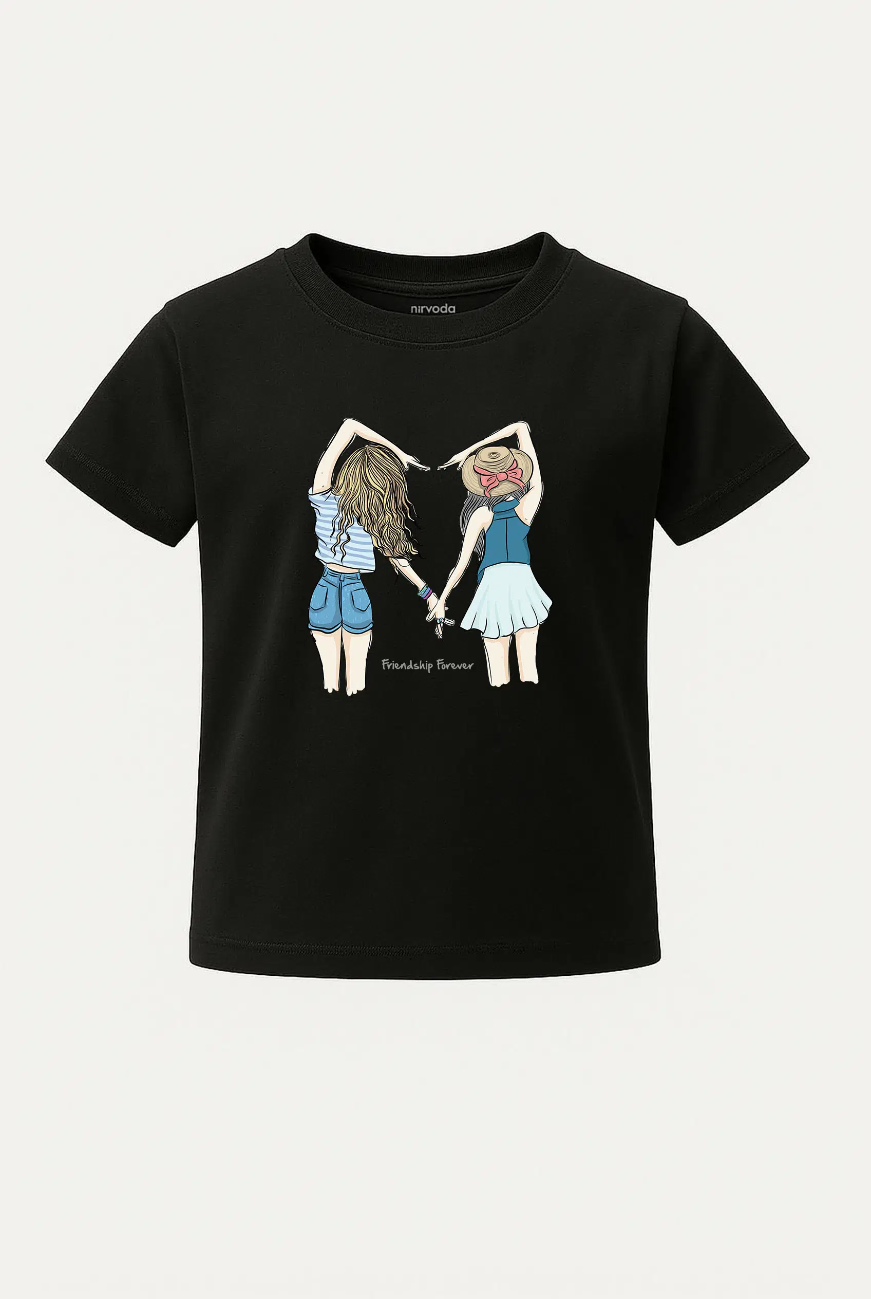 Kız Ardaşlar Kalp Friendship Forever Baskılı Çocuk Tişört, %100 pamuk 24/1 süprem penye kumaştan üretilmiştir ve Nirvoda kız arkadaşlar çocuk tişört koleksiyonu arasında yer almaktadır. Nefes alabilir yapısı sayesinde terletmeyi minimuma indiren yumuşacık dokuya sahiptir. Yüksek dayanıklılığa sahip transfer baskı teknolojisi uygulanan baskılı tişörtlerimiz her yıkamada canlılığını korur. Hem kendiniz için şık bir seçim, hem de çocuklarınıza özel ve anlamlı bir hediye alternatifi olarak tercih edebilirsiniz.