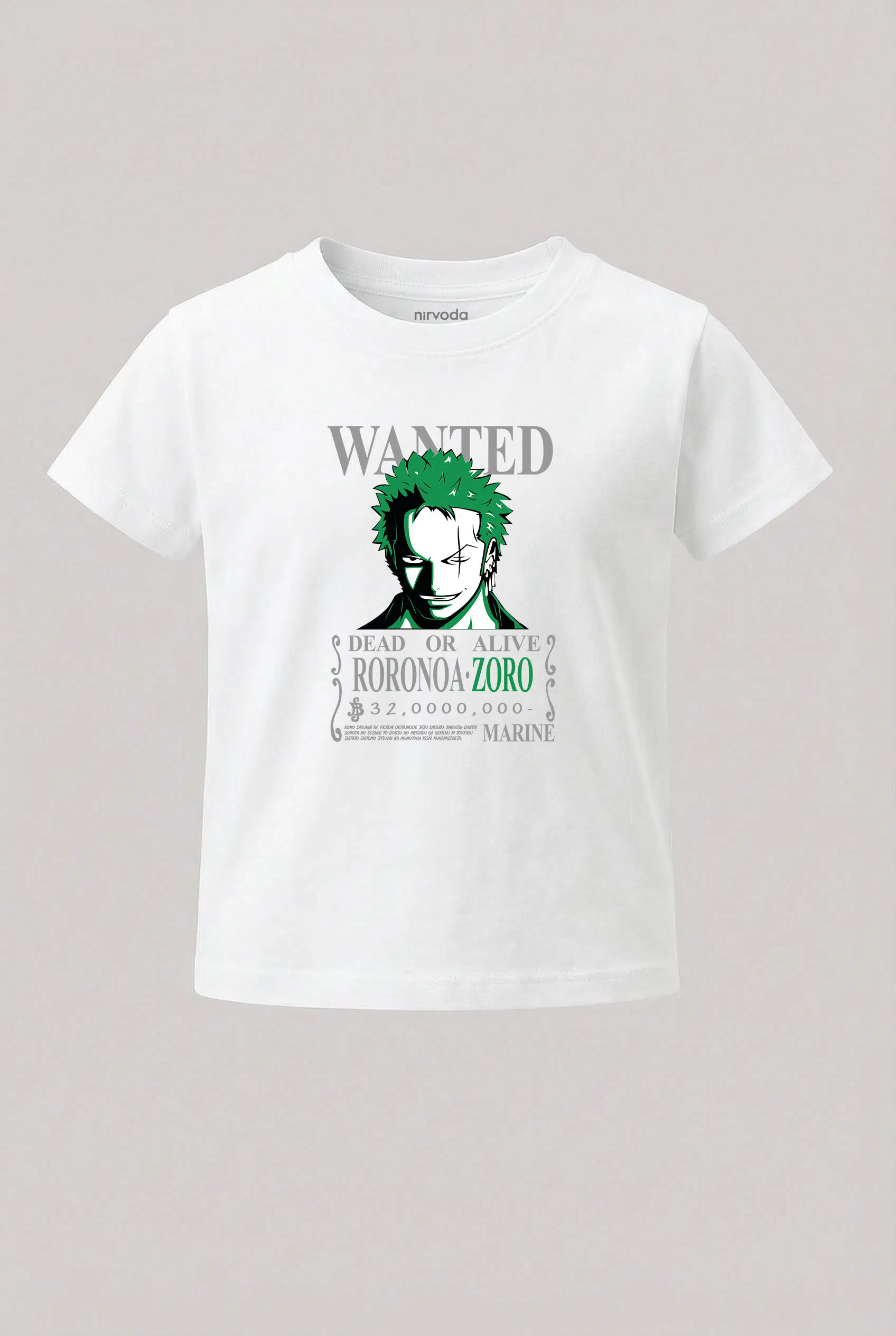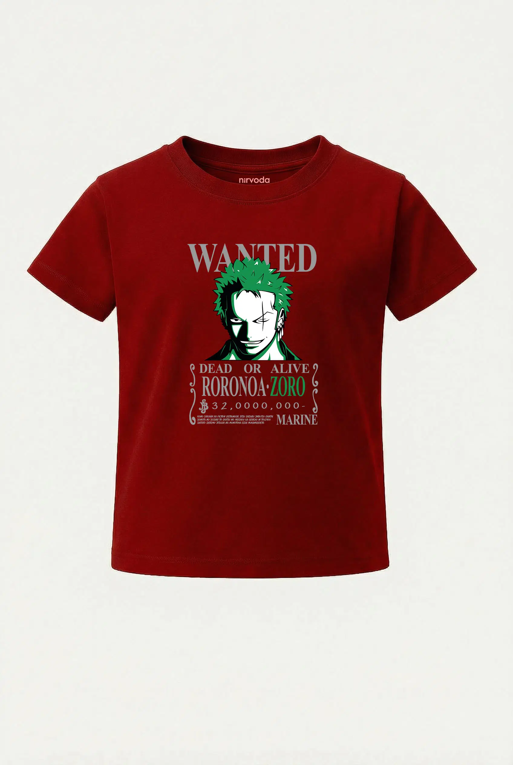 Wanted Roronoa Zoro One Piece Baskılı Çocuk Tişört, %100 pamuk 24/1 süprem penye kumaştan üretilmiştir ve Nirvoda Roronoa zoro çocuk tişört koleksiyonu arasında yer almaktadır. Nefes alabilir yapısı sayesinde terletmeyi minimuma indiren yumuşacık dokuya sahiptir. Yüksek dayanıklılığa sahip transfer baskı teknolojisi uygulanan baskılı tişörtlerimiz her yıkamada canlılığını korur. Hem kendiniz için şık bir seçim, hem de çocuklarınıza özel ve anlamlı bir hediye alternatifi olarak tercih edebilirsiniz.