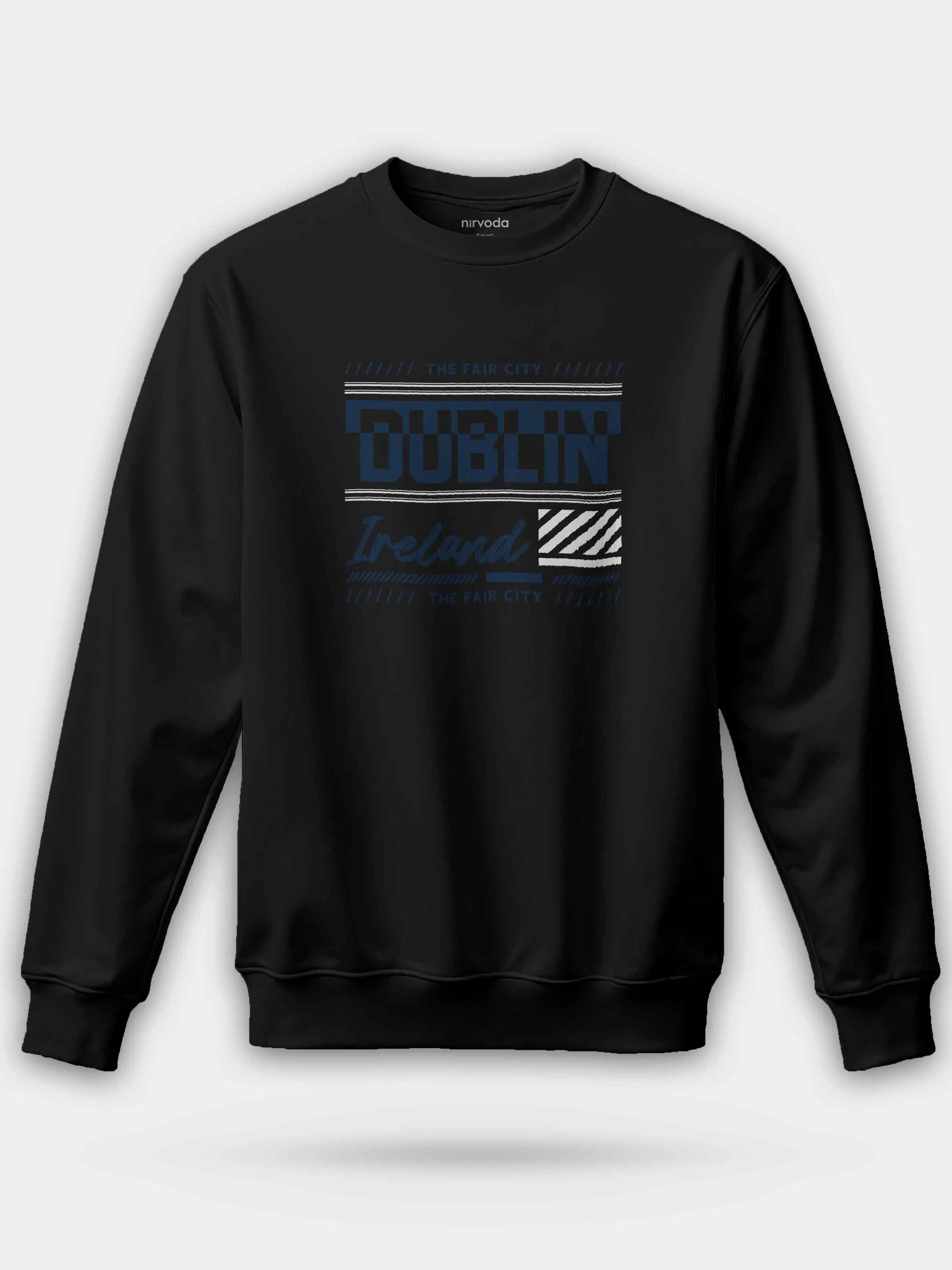 Dublin İrlanda Siyah %100 Pamuk Bisiklet Yaka Sweatshirt 3 iplik şardonsuz, orta kalınlıkta kumaşı ile sonbahar ve kış aylarına uygundur.
