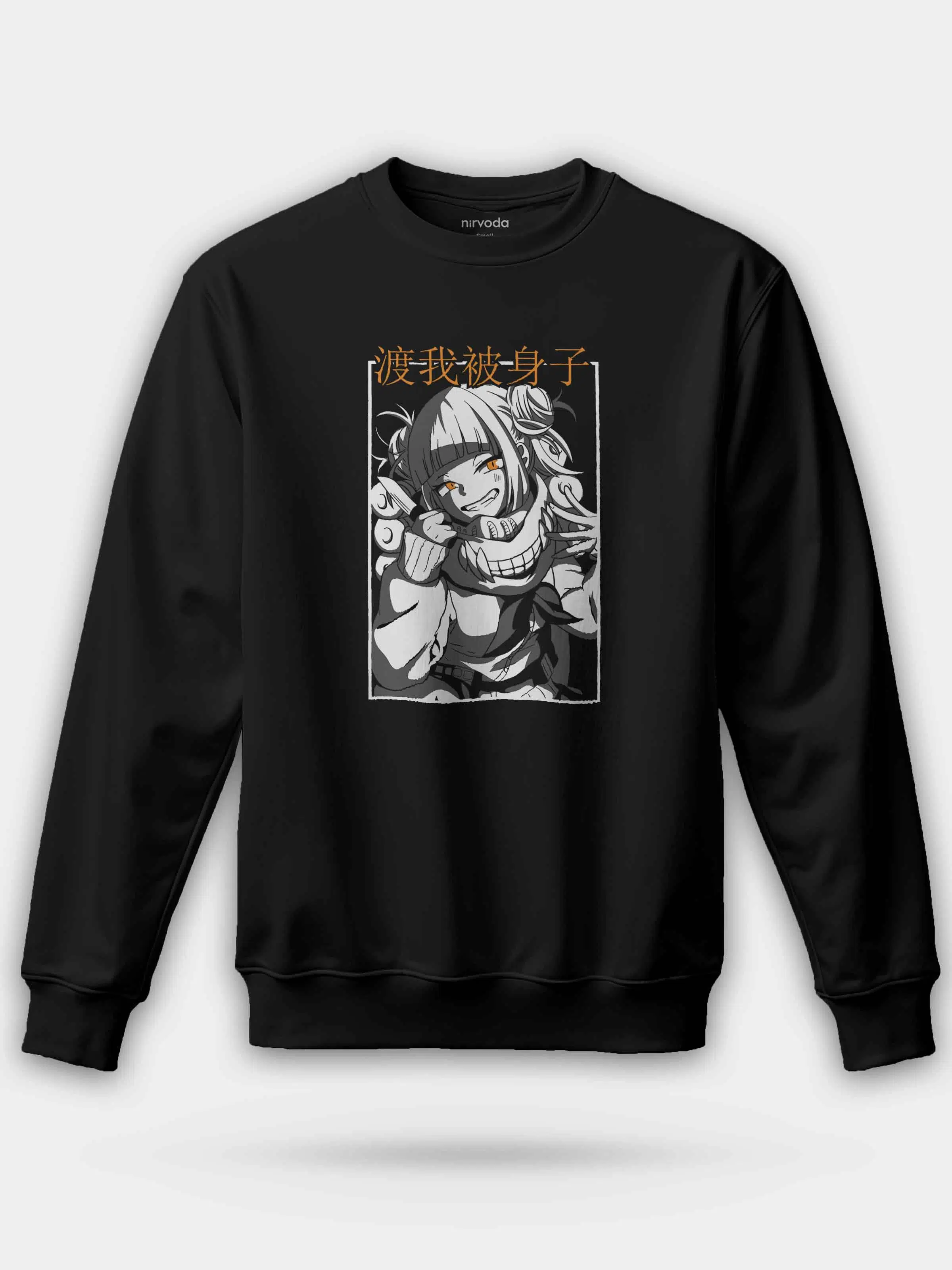 Himiko Toga My Hero Academia Siyah %100 Pamuk Bisiklet Yaka Sweatshirt 3 iplik şardonsuz, orta kalınlıkta kumaşı ile sonbahar ve kış aylarına uygundur.