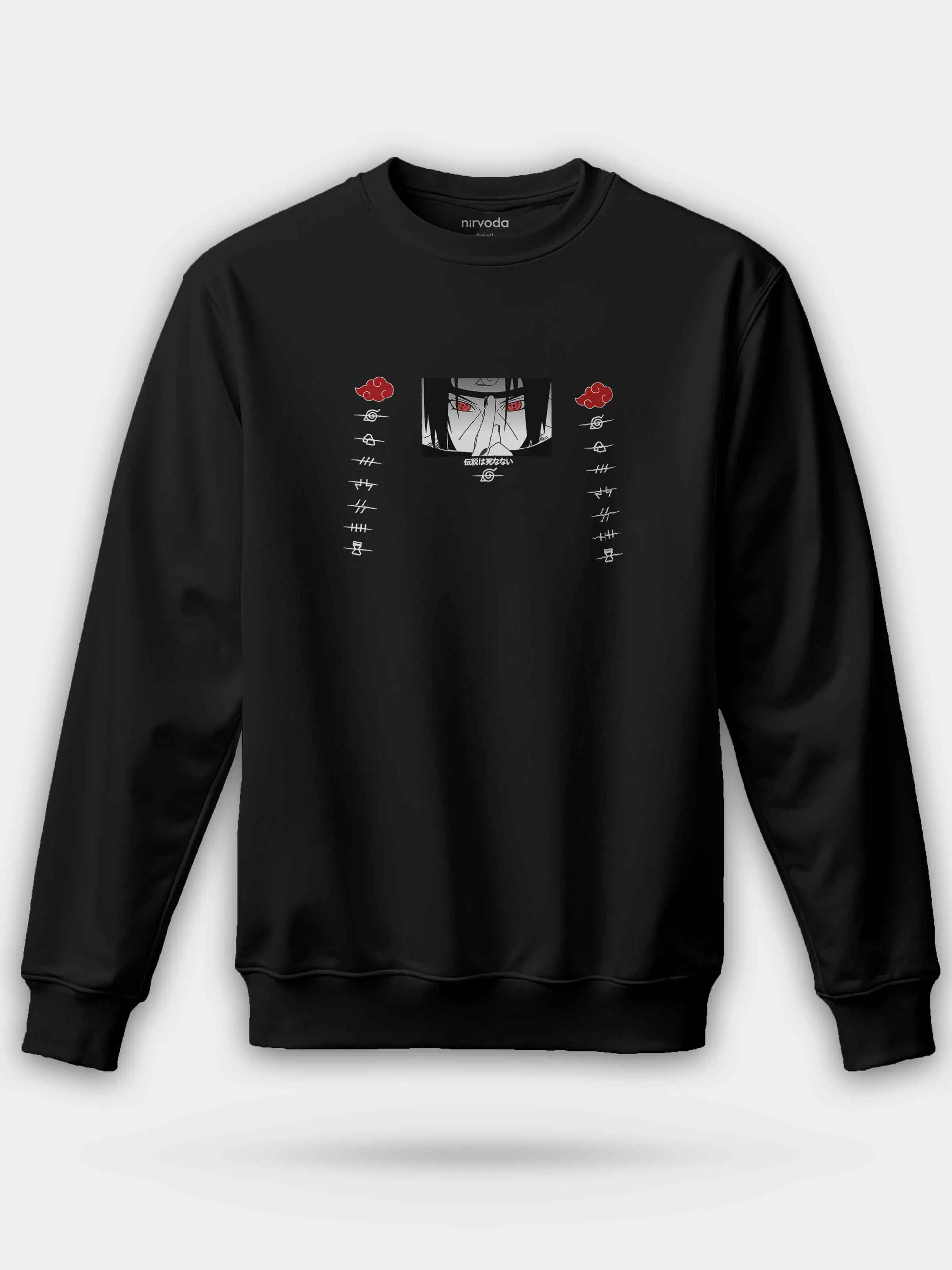 İtachi Japon Naruto Siyah %100 Pamuk Bisiklet Yaka Sweatshirt 3 iplik şardonsuz, orta kalınlıkta kumaşı ile sonbahar ve kış aylarına uygundur.
