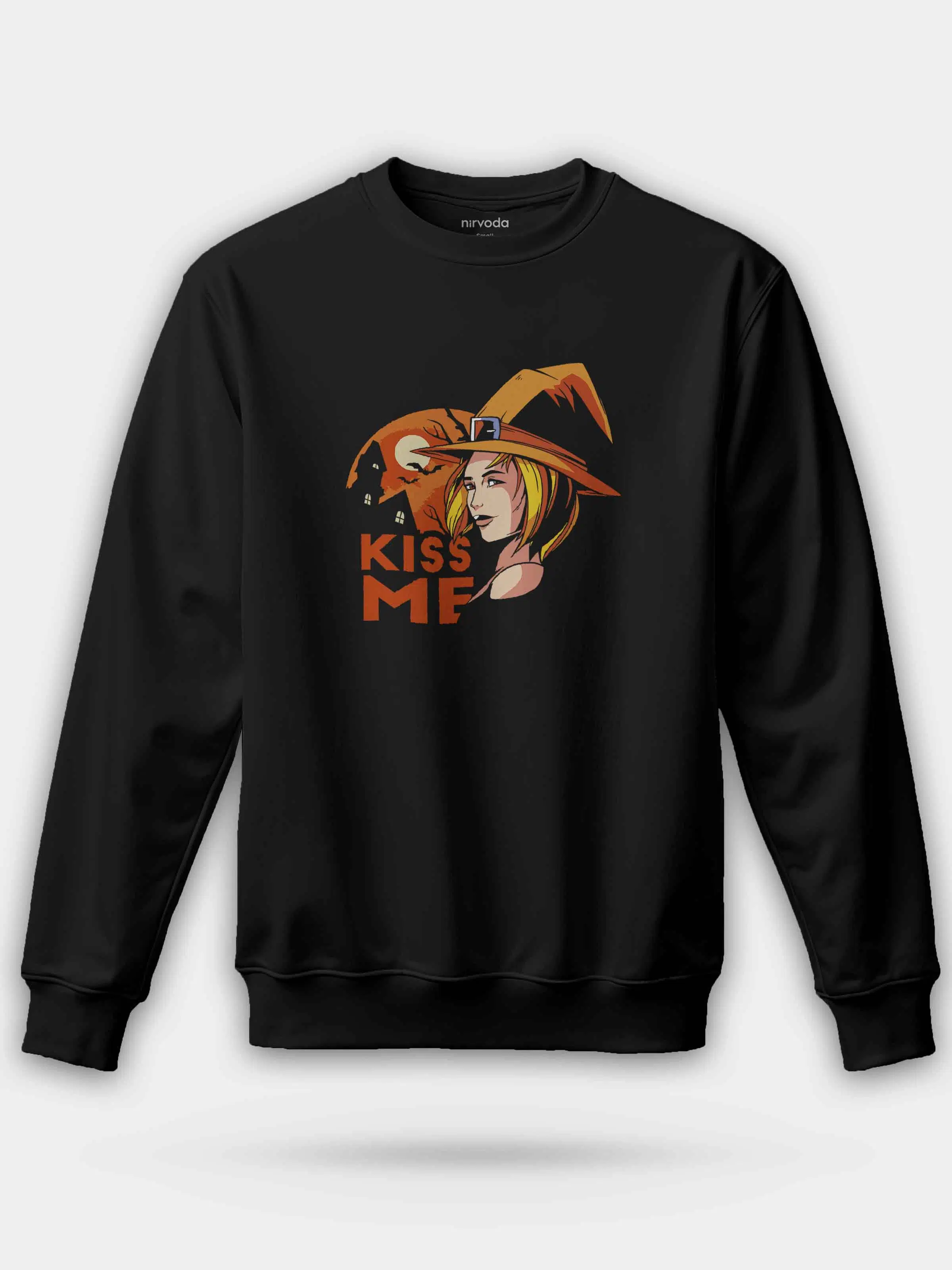 Kiss Me Cadı Siyah %100 Pamuk Bisiklet Yaka Sweatshirt 3 iplik şardonsuz, orta kalınlıkta kumaşı ile sonbahar ve kış aylarına uygundur.