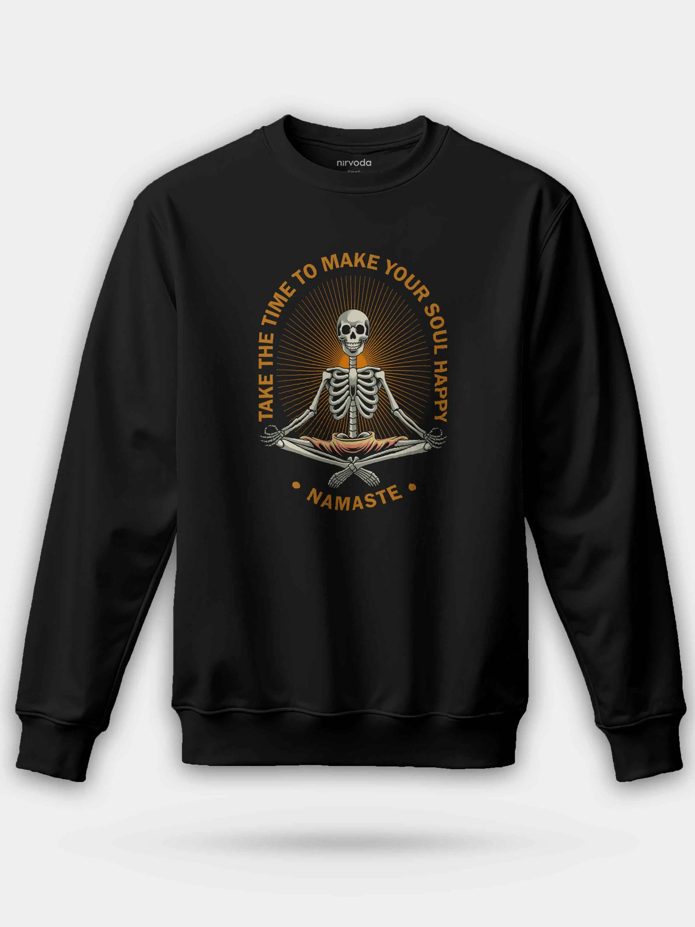 Nameste Yoga İskelet Siyah %100 Pamuk Bisiklet Yaka Sweatshirt 3 iplik şardonsuz, orta kalınlıkta kumaşı ile sonbahar ve kış aylarına uygundur.