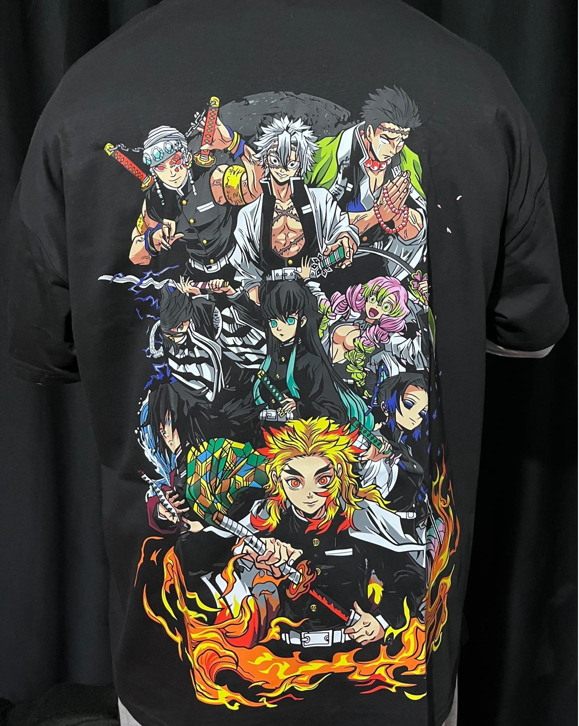 Demon Slayer İblis Avcıları Geniş Baskılı Oversize Tişört 55 cm uzunluğa sahip geniş bir tasarım alanına sahiptir. Tam boy baskı sevenler için özel olarak üretilen oversize tişört unisex tasarımda ve %100 organik pamuk kumaştan üretilmiştir. Geniş kesim yapısıyla, bol giyim tercih edenlere özel yapıdadır. Nefes alabilir kumaşı sayesinde sıcak günlerde bile konforlu bir deneyim yaşatır. Yüksek dayanıklılığa sahip transfer baskı teknolojisi uygulanan baskılı tişörtlerimiz her yıkamada canlılığını korur. Hem kendiniz için şık bir seçim, hem de sevdiklerinize özel ve anlamlı bir hediye alternatifi olarak tercih edebilirsiniz.