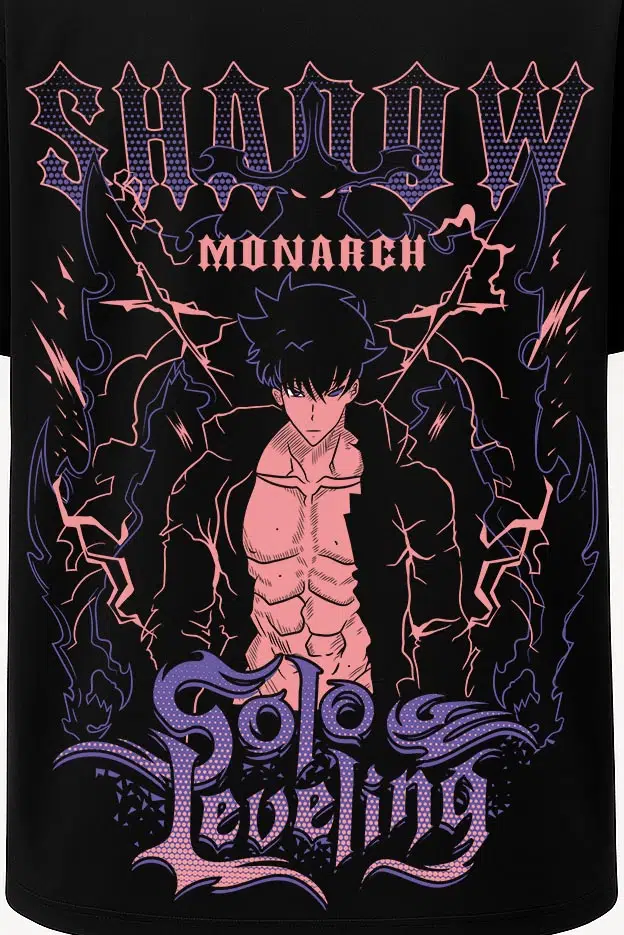 Solo Leveling Geniş Baskılı Oversize Tişört 55 cm uzunluğa sahip geniş bir tasarım alanına sahiptir. Tam boy baskı sevenler için özel olarak üretilen oversize tişört unisex tasarımda ve %100 organik pamuk kumaştan üretilmiştir. Geniş kesim yapısıyla, bol giyim tercih edenlere özel yapıdadır. Nefes alabilir kumaşı sayesinde sıcak günlerde bile konforlu bir deneyim yaşatır. Yüksek dayanıklılığa sahip transfer baskı teknolojisi uygulanan baskılı anime tişörtlerimiz her yıkamada canlılığını korur. Hem kendiniz için şık bir seçim, hem de sevdiklerinize özel ve anlamlı bir hediye alternatifi olarak tercih edebilirsiniz.