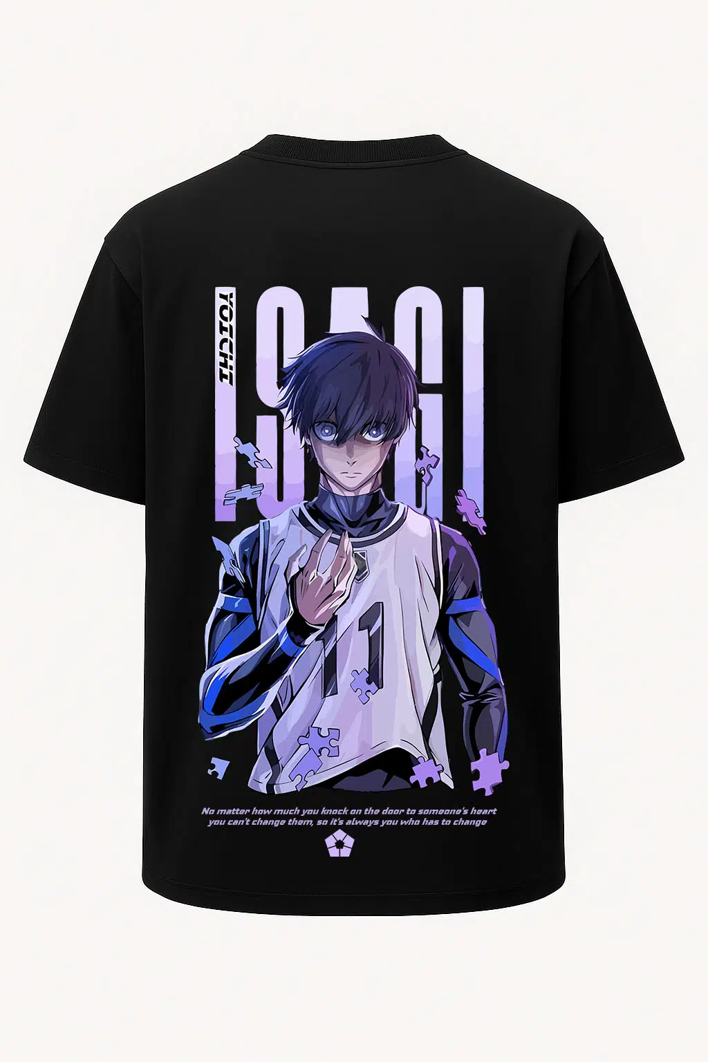 Yoichi İsagi 11 Blue Lock Geniş Baskılı Oversize Tişört 55 cm uzunluğa sahip geniş bir tasarım alanına sahiptir. Tam boy Yoichi İsagi baskı sevenler için özel olarak üretilen oversize tişört unisex tasarımda ve %100 organik pamuk kumaştan üretilmiştir. Geniş kesim yapısıyla, bol giyim tercih edenlere özel yapıdadır. Nefes alabilir kumaşı sayesinde sıcak günlerde bile konforlu bir deneyim yaşatır. Yüksek dayanıklılığa sahip transfer baskı teknolojisi uygulanan baskılı tişörtlerimiz her yıkamada canlılığını korur. Hem kendiniz için şık bir seçim, hem de sevdiklerinize özel ve anlamlı bir hediye alternatifi olarak tercih edebilirsiniz.