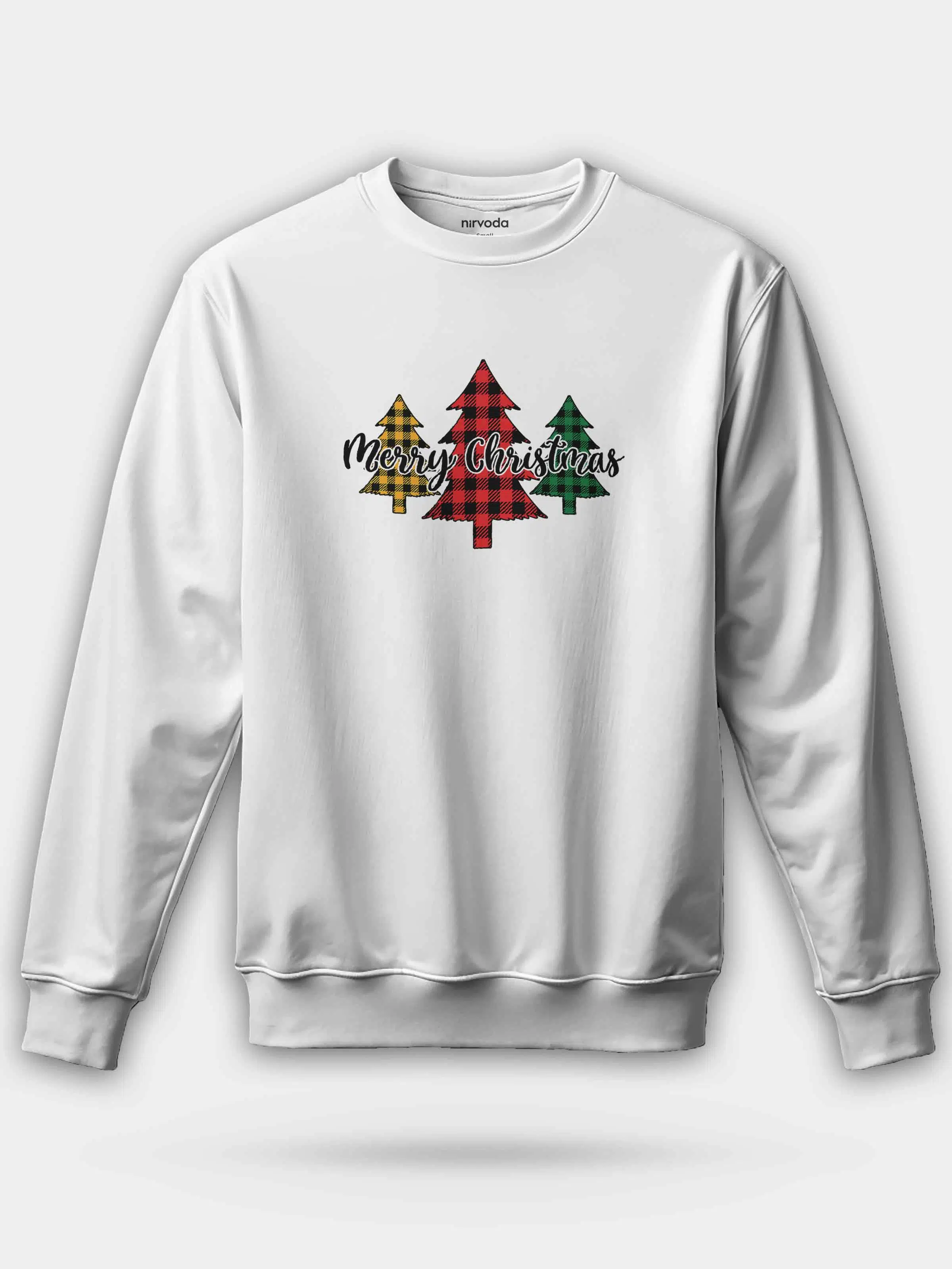 Renkli Yılbaşı Ağacı %100 Pamuk Bisiklet Yaka Sweatshirt 3 iplik şardonsuz, orta kalınlıkta kumaşı ile sonbahar ve kış aylarına uygundur.
