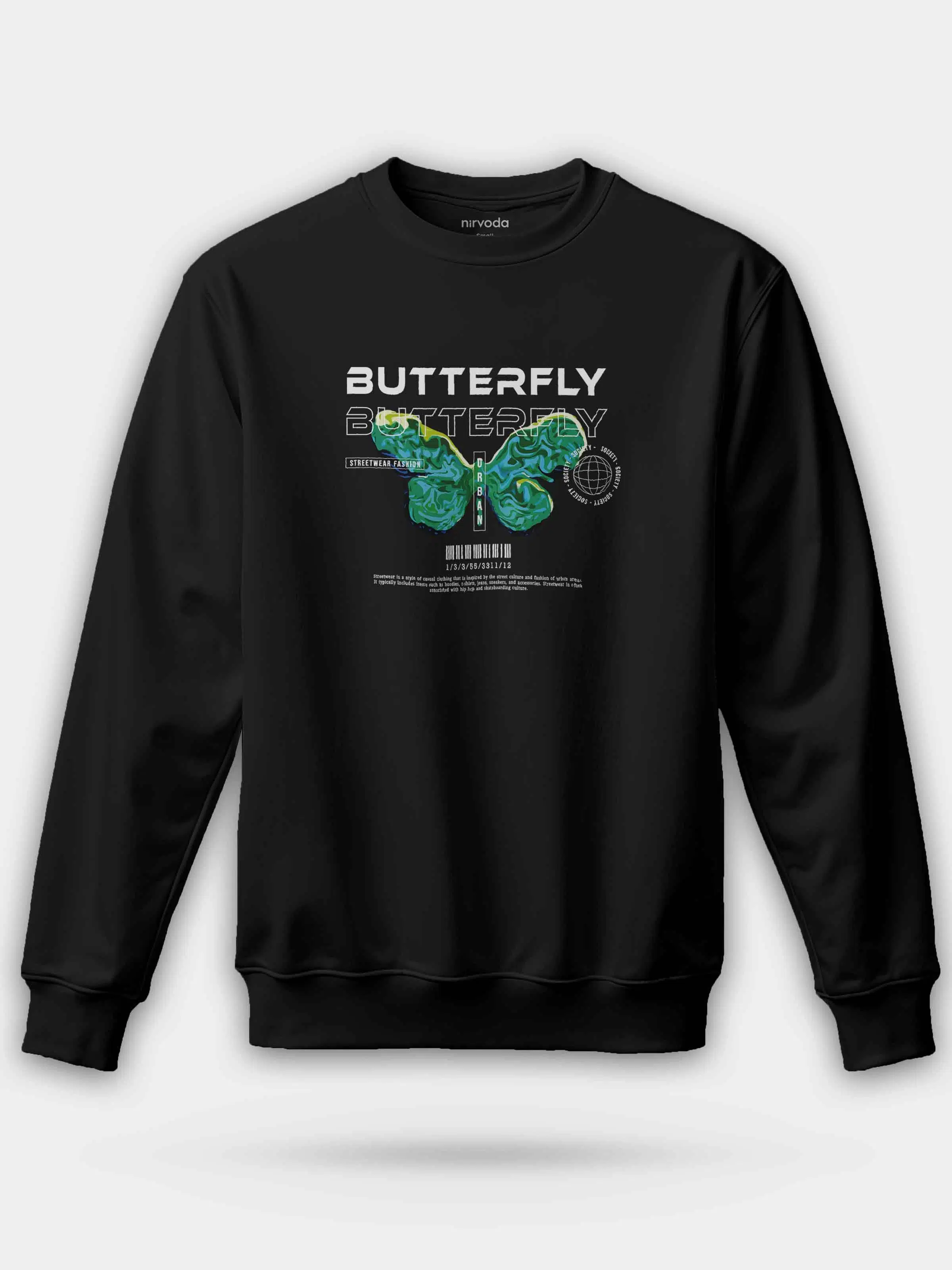 Yeşil Kelebek Butterfly Siyah %100 Pamuk Bisiklet Yaka Sweatshirt 3 iplik şardonsuz, orta kalınlıkta kumaşı ile sonbahar ve kış aylarına uygundur.